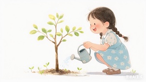 她每天給樹苗澆水,和它說話。慢慢地,樹苗長大了,周圍又冒出了新的嫩芽。