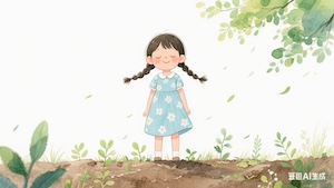 有一天,微風吹過,樹葉沙沙響,像在唱歌。小女孩閉上眼睛,彷彿聽見一個溫柔的聲音——那是母親的微笑,輕輕拂過她的臉頰。