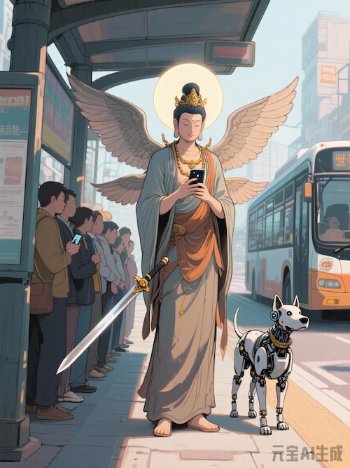 台風過後,入世菩薩和其他要上班的人,一起等巴士。