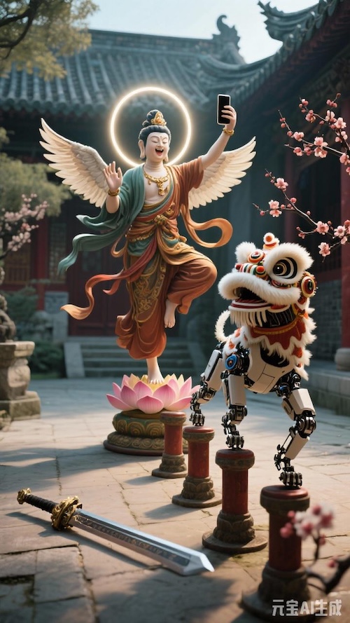 入世菩薩興奮地拍攝機械狗踏梅花樁。