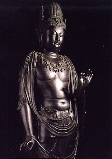 月光菩薩又稱月淨菩薩、月光遍照菩薩。月光菩薩是東方淨琉璃世界藥師佛之右脅侍,與左脅侍日光菩薩並為藥師如來的兩大輔佐。藥師如來,月光菩薩與日光菩薩三尊菩薩合稱「東方三聖」。亦有相傳藥師如來與日光、月光菩薩本為父子,曾於電光如來法運中勤修梵行,受電光如來咐囑分別改名為醫王與日照、月照,發無上菩提大願,誓救六道一切有情出輪迴苦。