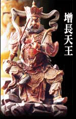 「增長」意為能傳令眾生,增長善根,護持佛法,故名增長天王。住須彌山琉璃埵,身為青色,穿甲冑,首握寶劍。為的是保護佛法,部受侵犯,他負責守護南瞻部洲。是『二十諸天』中的第五天王。