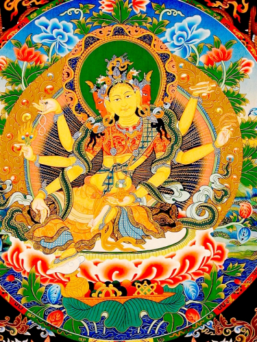 財源天母,又稱財寶佛母、財續佛母等,屬密咒部作密,系瑜珈密續佛部尊,於六道中專司人道,掌世間之財富,併為五路財神之佛母。