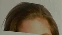 相書說,「何知父母早不全?但看黃毛額角旋」,全者,必為雙重父母,即父母婚姻破裂,其中一方另外婚嫁。 但必須參看其他,方知刑尅父親或母親。 若是鼻樑太低,便容易自少失去父愛。 但不要一見髮根生得低,便必是父母有問題,因為重點,還要髮根生向日月角,亦要留意是否彎曲生長,因為還有一個「旋」字也。 圖中三個女郎,額上的頭髮走勢,都有此象徵,她們的父母都離異了。 但鼻子山根部位都生得不低,她們的父母親並没有早死。
