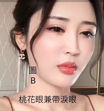 桃花眼,是相學上的一大課題。 若果連桃花眼都不懂分辨者,可說對相學一道,尚未入門。 行桃花運的戀愛時期,眼中會出現異樣光芒,是暫時的桃花眼。 如果沒有人追求,都現出桃花光芒,則是先天桃花眼。《可參參考附圖A》 先天桃花眼,不論男女,婚姻都易有危機。 如果戀愛途中出現波折,甚至有破裂危機,便會在桃花眼之中帶上「淚眼」,感情深的,更帶幽怨感覺。《参考附圖B》