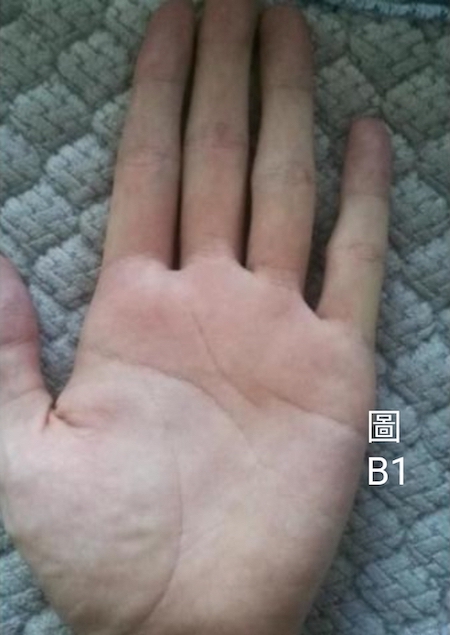 天紋斷了,(見圖B1和B2)不但你閣下感情大斷裂,離婚之象。