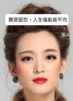 女性最好是「鵝疍型」面,稱之為鳳型面,最有福份(圖A及圖B)。