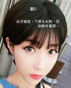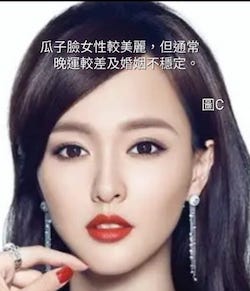 圖C及圖D的瓜子面型,是美人胚子,但婚姻不穩定,最好配年長丈夫,或是對方曾經有婚姻歷史。