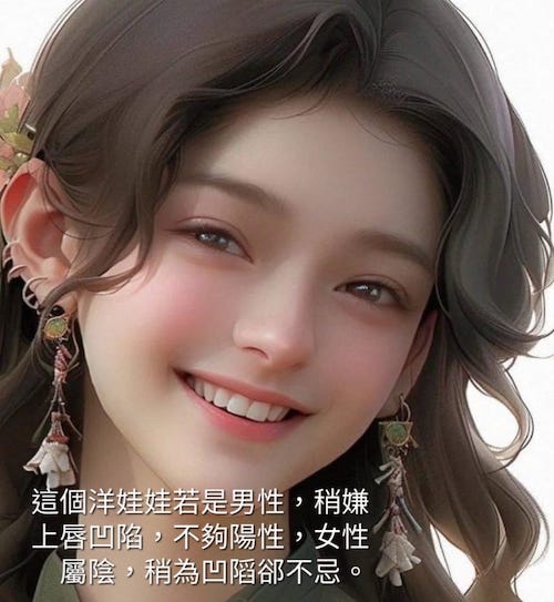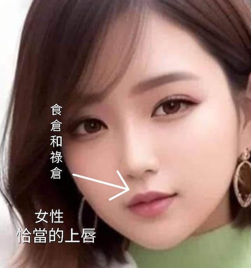 上唇的食倉祿倉,相學上要求豐厚漲凸一點,才有口福和食福(見附屬之女圖)。
