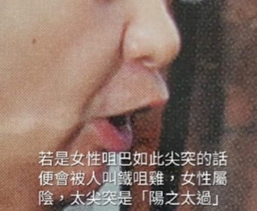 上唇漲凸的男性沒有人稱之為「鐵咀雞」,反而是因為有見義勇為之心腸,這種咀型被稱之為「大俠嘴」。