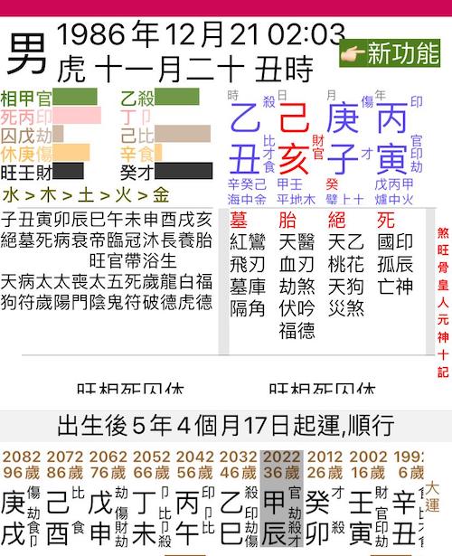 本命的母親星「正印」,自坐寅木長生,長生有長生不老的意味,男的是性能力高強,女的也會是元神強壯。