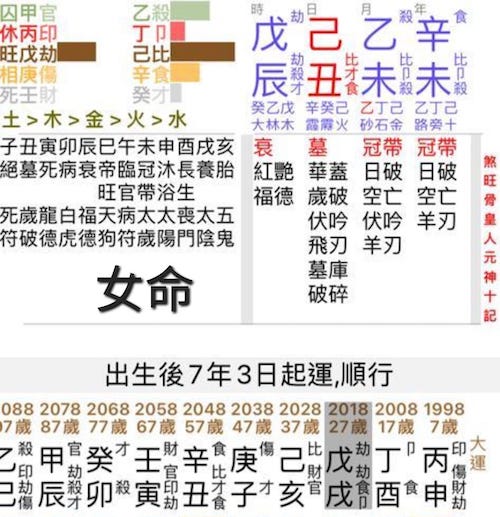 我一看命盤(見附圖),不禁暗暗皺眉,於是對她說道:伯母,你女兒是事業型,很能幹,做事主動兼硬性子,脾氣發作了,並没有人可以勸得住。