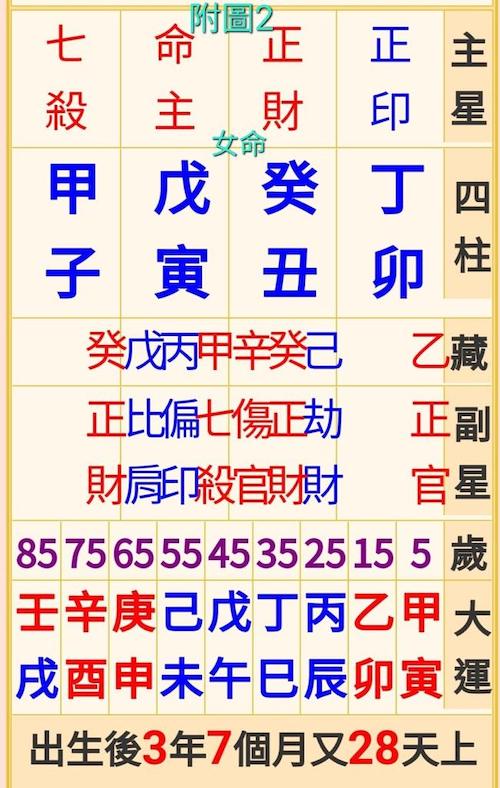 早幾天有朋友問及一個小女孩的命格,(見附圖1)。