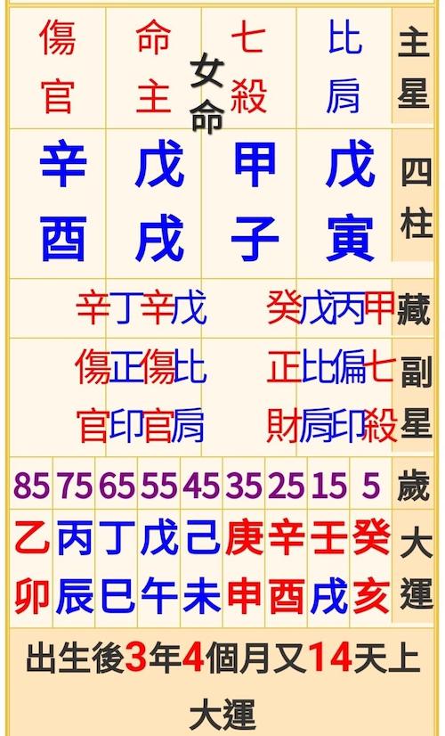 現在大運也是「傷官」,容易意外有孕而流產,敬請小心。