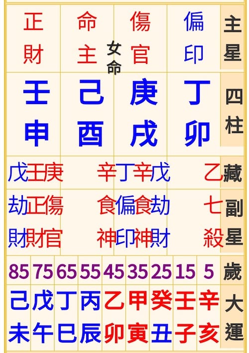 為什麼是發夢而不是其他毛病?因為母親星丁火的墓庫被卯木合而化火,印的墓庫是藏在腦海深處的意思,印亦代表「烙印」,所以是夢境。