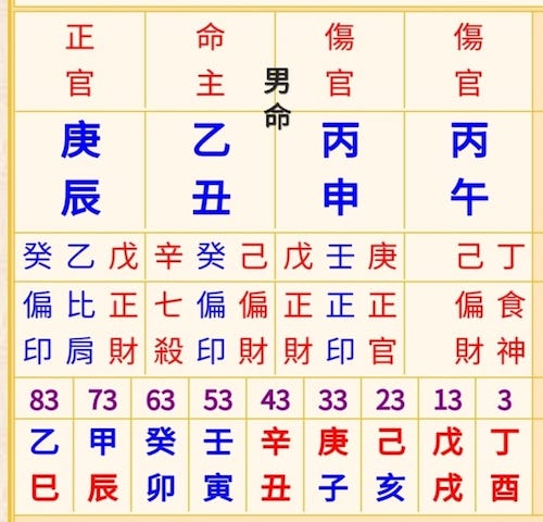 以陰陽定男女,丙火是陽,故本命之岳父是某老牌富豪家族之子孫,而且有點政治地位。