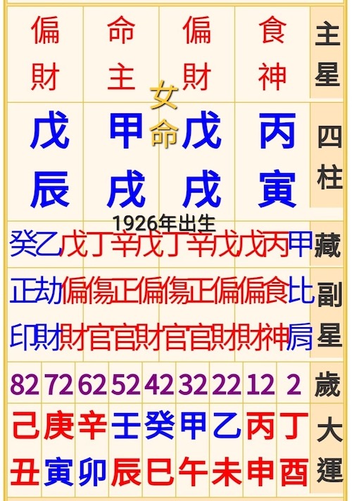 這個女命是1926年出生,如果還在,接近一百歲了。