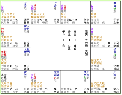 命宮天同與天梁相對,有惰性,故宜慎重交友,如交損友,則影響一生。兄弟宮破軍化權,會祿馬交馳,藉同輩之力創業而獲利。