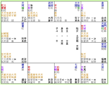 在《偉大領袖》一文,曾經論述命宮貪狼居申:這個紫相盤的特性是矛盾組合特多,波折、動盪的組合也多,計有太陽、太陰,為一明一暗、一旺一弱,反差很大;武曲、天府則一行動、一猶豫,一剛一柔;天機、巨門則一機靈、一沉潛,為一輕浮、一暗藏的組合;紫微、天相則一為皇帝、一為侍從,即一役人、一役於人;另天同、天梁處於巳亥,主奔波超伏;七殺居子而不見紫微, 倍添動盪不安。所謂愛與不愛、信任與不信任、爭奪與不爭奪的課題,應用於陳小姐的婚姻與事業中,頗為值得留意。