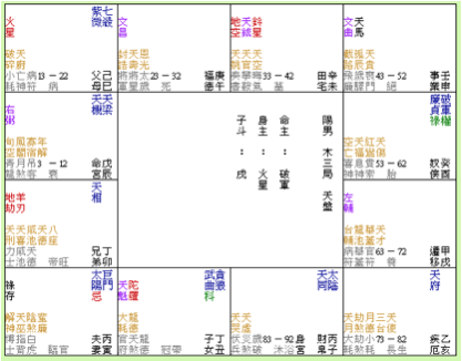 跟著看看父母宮,紫微七殺居巳,會天府、火星、陀羅、天魁等單星,主父上主觀,常發主觀命令,左右命主的意志。據CY對幼年時生活的描述:「父親任職警察,長年駐守港督府。」一個山東大漢,任職警察,多少會對其子女有獨斷獨行,喜惡隨心的行為。父母宮亦可推斷自己跟上司、主管及主管機構的關係。當選成為香港特區首長後,他的上司主管,不言而喻。