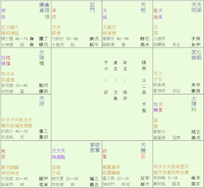 到了32-41歲,他行經甲寅大運,大運命宮無正曜,借入對宮天同天梁、地劫與地空守宮,沖會甲運太陽化忌、火星、本命天機化忌、鈴星。古書云﹕「天梁天同會羊陀、四煞,必多紛擾、災禍、災病、爭鬥、口舌」。甲運他所遇除了上述煞星之外,更遇大耗、陰煞、災煞、劫煞等,是為刑耗並集,再加上被化忌所會,必有困難需要化解。因此他行這個甲寅大運比較困難,但問題是為何嚴重程度足以奪去他的性命呢﹖