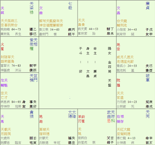 每逢中秋前後,必然想起鄧麗君小姐的歌曲《但願人長久》。其實她的命盤早在本欄第一篇《得不到的愛情》已寫過,但朋友傳來另一時辰的命盤,聲稱她的生日是1953年1月29日;雖然同是紫相基本盤,但命宮居亥,天同獨坐。