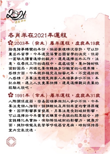 2021 辛丑牛年生肖運程﹣肖羊