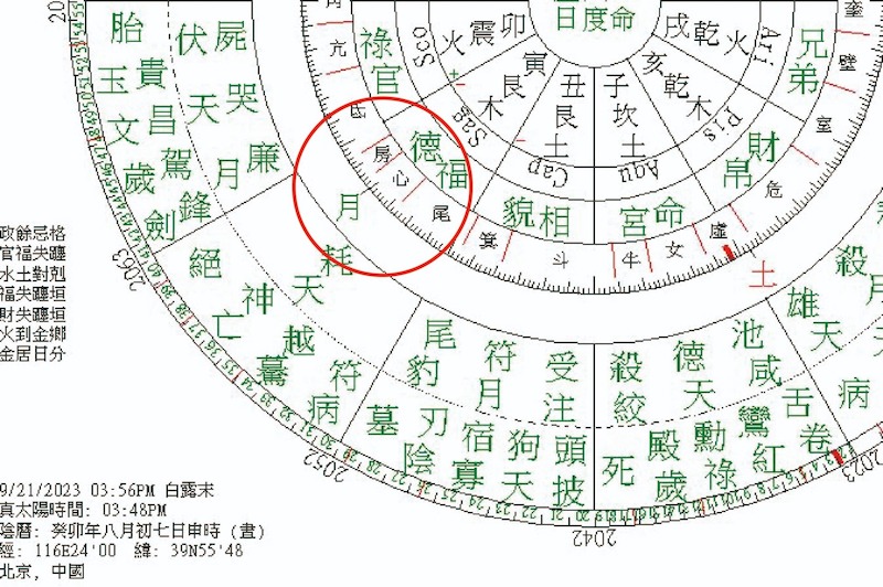 氐宿是東方蒼龍的第三個星宿,又名「氐土貉」,其位置象徵著蒼龍的前足,而氐字 可通「柢」,為根為本之義,故有樹根、基層及低部的意思,常說「歸根究柢」,其 原意在此。可是,太歲卯宮與鬥牛煞相逢,加上太乙值年卦為明夷,可見世運更為動 盪,筆者再把 2023 年第一個月食的占星盤打開,赫然發現月亮運行至亢宿,亢有抵 抗之意,氐為基層之象,也許意味著人民的憤怒凝聚了力量,並作出扺抗,究竟是哪 個國家,其實已經呼之欲出。