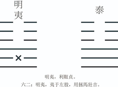 離卦在下為火光,故有光明隕落之象,乃屬不祥之卦,所以明夷卦常指亂世時代,及大型災難到來的意思,由於明夷卦的象意與日食相關,因此,日食之兆必然對我國影響甚大!無論天災也好,人禍也好,但願不足以「夷為平地」。
