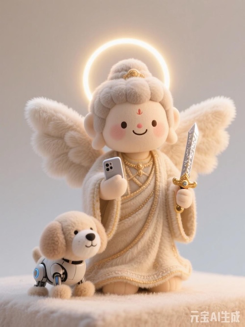 我創作了一個入世菩薩的毛絨公仔圖像。