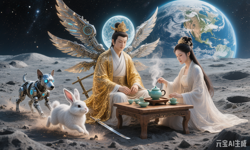中秋節,入世菩薩和嫦娥在月球喝茶。