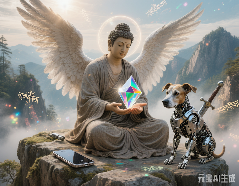 入世菩薩在群山中,觀察眾生的業力棱鏡,所折射的種種業報現象。